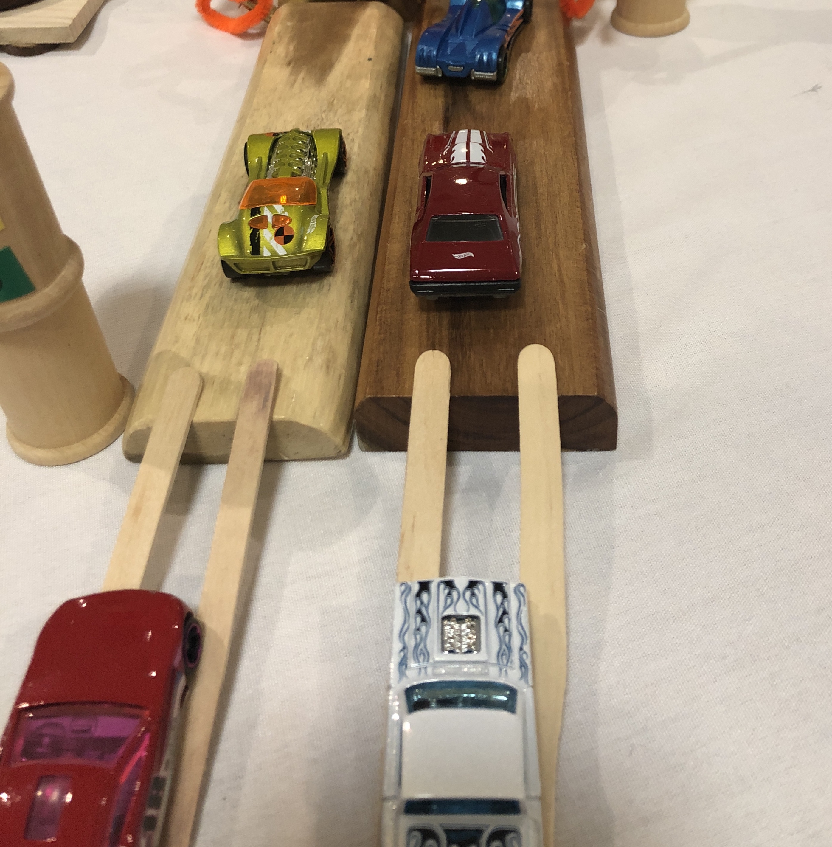 Our children have played with small metal cars like this too. I have tried to “balance” myself with the children exploring the fantasy of the cars racing (some threw the cars to achieve speed), teaching ramp building to achieve speed, putting out number lines to introduce the idea of measurement as a means to “win” as another idea where the fastest car won. I also introduces other objects, thinking it was the movement that was the focus of the play (marbles, wooden cylinders).