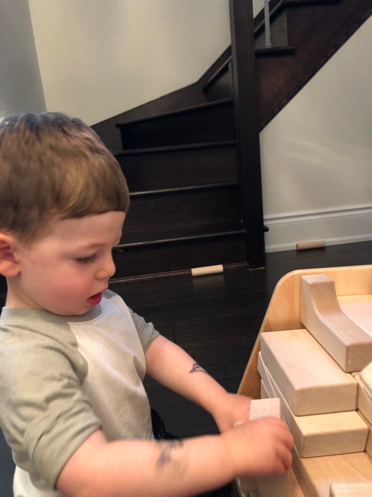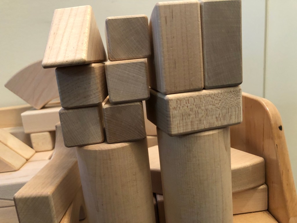 When was the last time you played with blocks? Were you a child or an adult? When children play with blocks do you join in? I (Diane), love playing blocks with my grandson. Now 3 years old, Griffen and I have played together almost every time he visits. Griffen likes to stack blocks sequencing them from smallest to biggest. Other times, he likes to build towers so that he can knock them down with his “light saber”. Sometimes he stacks three blocks together to make a “hamburger” demonstrating the relationship between blocks and dramatic play. We have so much fun when we play together with blocks. Nothing but the best for my grandchildren! They have their own set of unit blocks at Bubbie’s house!