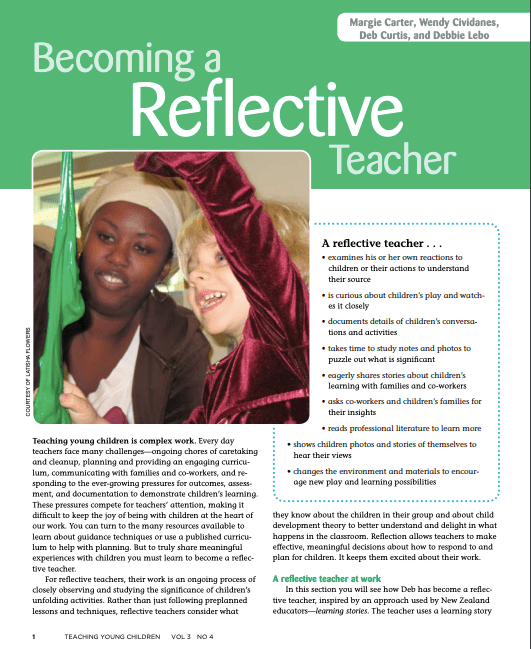 Another excellent resource to support communities of practice in early childhood education is this workbook, Reflecting in Communities of Practice also by Carter, Cividanes, Curtis and Lebo.