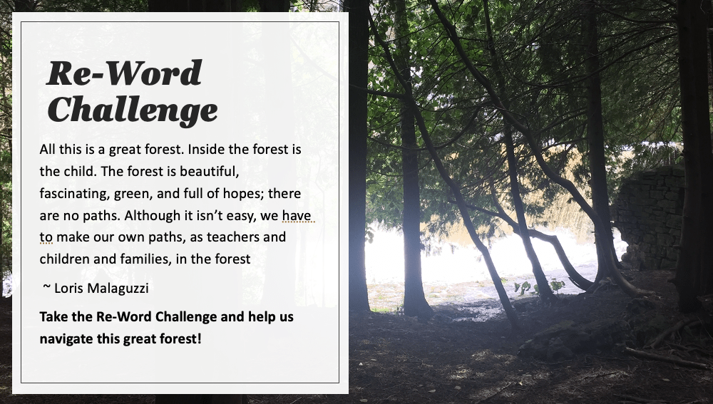 When I was teaching early childhood education degree students about the Reggio Emilia Approach, I wanted to create an assignment that offered them an opportunity to represent learning in multiple languages. I invited the students to respond to the reword challenge as we recognized that so many words related to the Reggio Emilia Approach began the same way, with the same two letters like research, reflect, rethink, relaunch, remember, revisit. I invite you, the readers of this blog, to reply in the comments section with the rewords that are resonating with you during this remarkable time. I also invite you, the readers of this blog to learn more about the Reggio Emilia Approach by taking an online course that I developed. This course is the first of five, that will be offered by the Dominion Early Learning Institute of Canada. My intention was to create something that I would have used in my work as an early childhood education professor. It is meant as an introduction to the approach that is accessible and affordable.