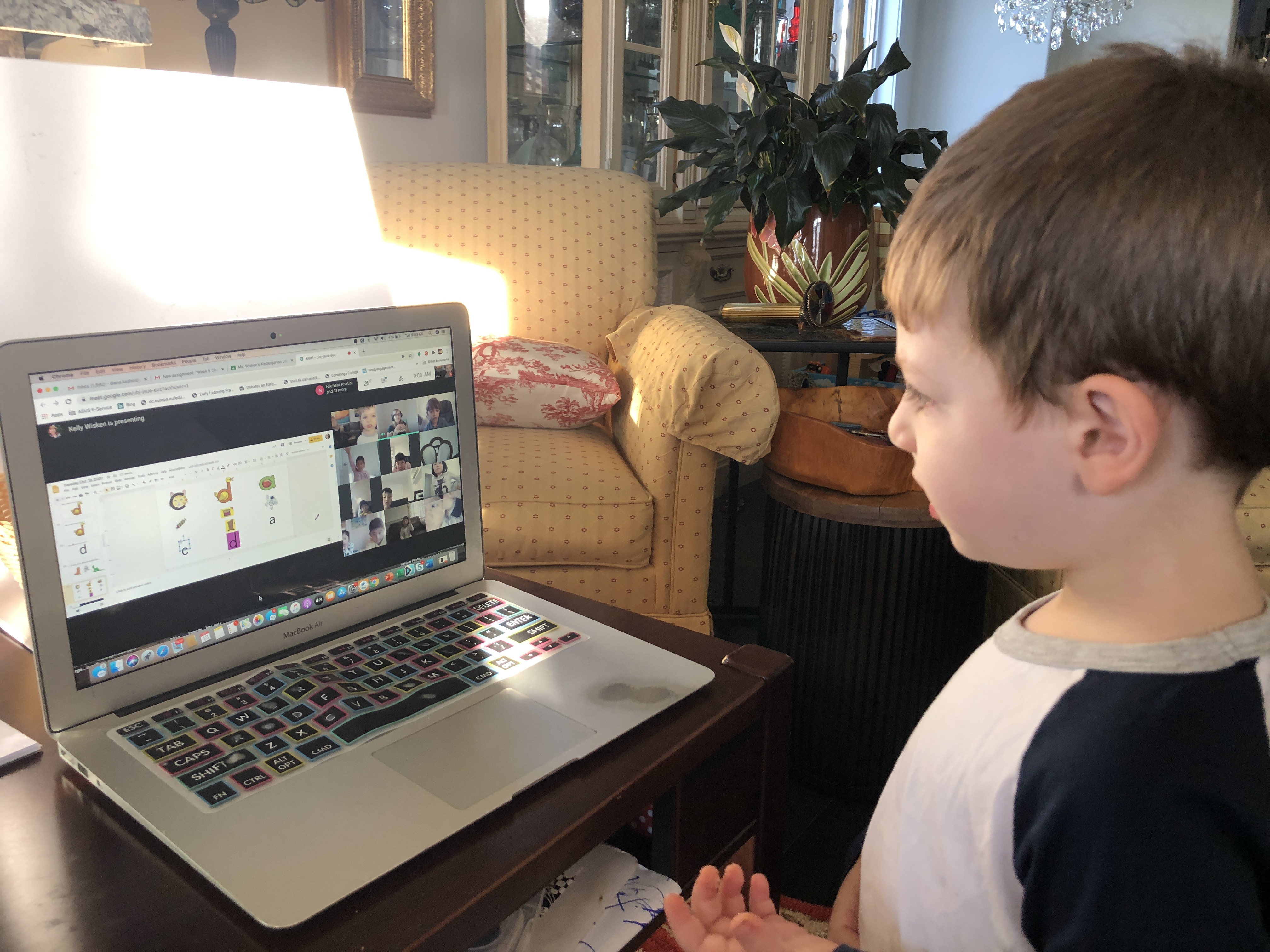 After going into lockdown a few days after facilitating my last face to face workshop in March I have pivoted to online professional learning as webinars have become the new normal. This is unprecedented as we are now required to maintain physical distance but be socially connected. During these uncertain times I want to support those who work in the early years sector as I, like so many others recognize them as essential and indispensable. Since May I have facilitated close to 50 webinars. In each and every one, no matter what the topic, I make sure I address the pandemic in the room. While it is easy to use or even overuse the words and phrases that have become associated with COVID-19 as I have just demonstrated, I genuinely want to express my deepest admiration for those working in the early years during this global crisis. Every day, I am grateful for friends on Facebook, Instagram and Twitter as they offer me a glimpse into their extraordinary new reality. When I see early childhood educators clad in full protective gear, I am not surprised by their resilience and enduring spirit that demonstrates their service to others. When I sit with my grandson, Griffen while he attends virtual kindergarten, I am inspired by all the early years educators who have risen to the challenges of online learning for our youngest learners. This shouldn’t be Griff’s junior kindergarten experience. It is not what we had envisioned for him. Yet, he still looks forward to joining his class online and enjoys the interactive learning experiences.