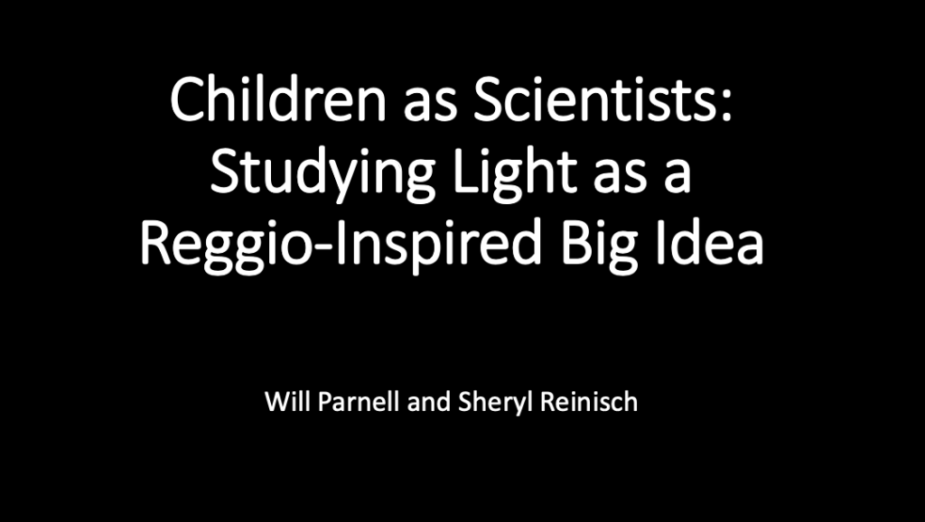 Light exploration leads to BIG IDEAS where children can be theory builders working through cognitive knots together with others. Connection is the BIG IDEA. Connections made to other children while pursuing investigation into light supported by teachers is what is important. Light sparks connection. Imagine how children would respond to this intentionally offered invitation to explore light offered by my friends at the Seneca College, Labschool.