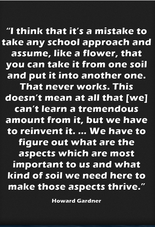 Howard Gardner, the cognitive psychologist and author, best known for his theory of multiple intelligence has spent time thinking and learning about the Reggio Emilia Approach. It is important that we pay attention to his words. Whatever our context is, we can find inspiration in relationship to the foundational ideas of this complex approach and grow our own interpretations in our own native soil in our home/heart.